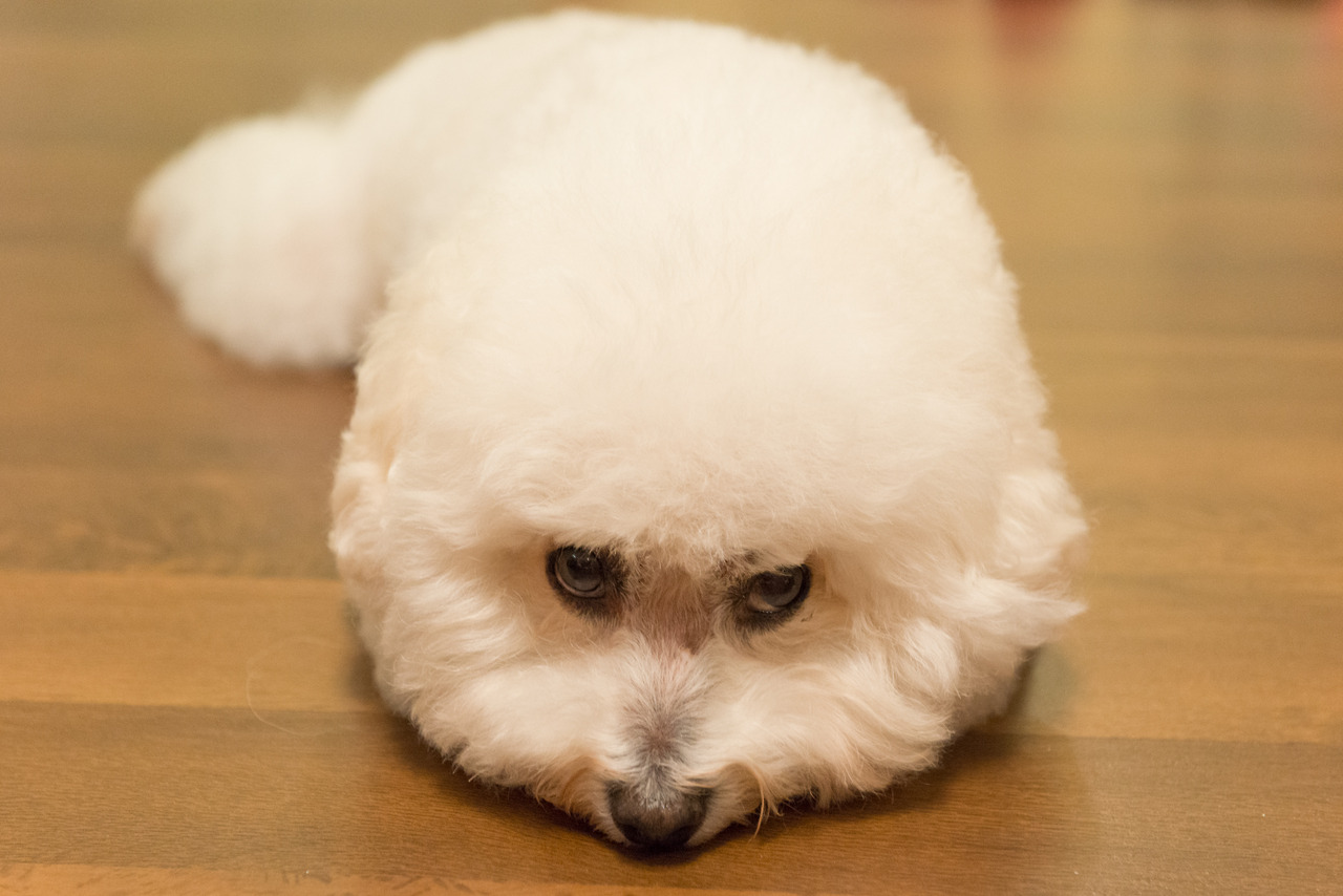 My 12 year old Bichon Frise Chloe being a space worm